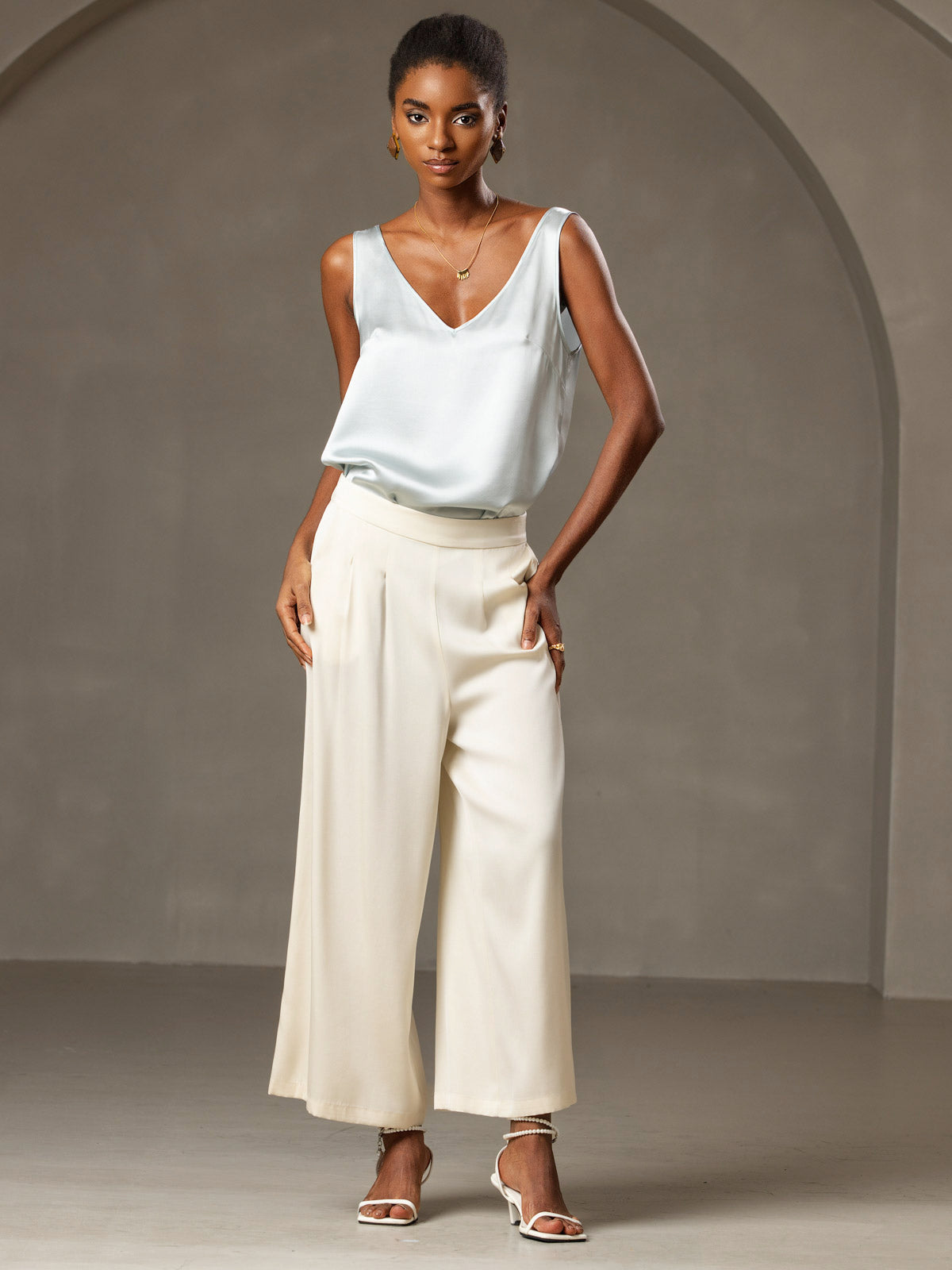 I purchased two of the V-neck strap tanks in different colors size small. There are 3 size options. I am 5’7” 122 lbs. This is my first order with Silky Silk. The leopard print top arrived in a few days and is beautiful, flattering & fits well. I can wear a bra underneath with no concerns of it peaking out. I have not washed it yet, but did lightly steam. Also included in my order is the light blue version. It’s shipping from a different location. There hasn’t been much movement at the facility. It’s getting to be a little concerning. I am going to give it one more day before reaching out to Silky Silk & hope they help. I didn’t add the extra insurance as I overlooked this option though have no intention of returning. I received this care card which may be helpful to know before if you’re deciding on sizes because it does mention there can be a tiny bit of shrinkage at time of wash. I hope this helps because there were only two reviews on this top which had me hesitant to order because I often decide based on consumer feedback.