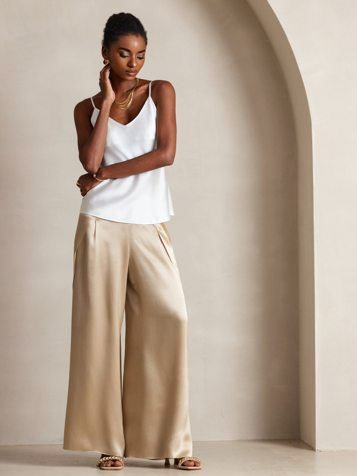 Débardeur en pure soie à décolleté en V et bretelles spaghetti