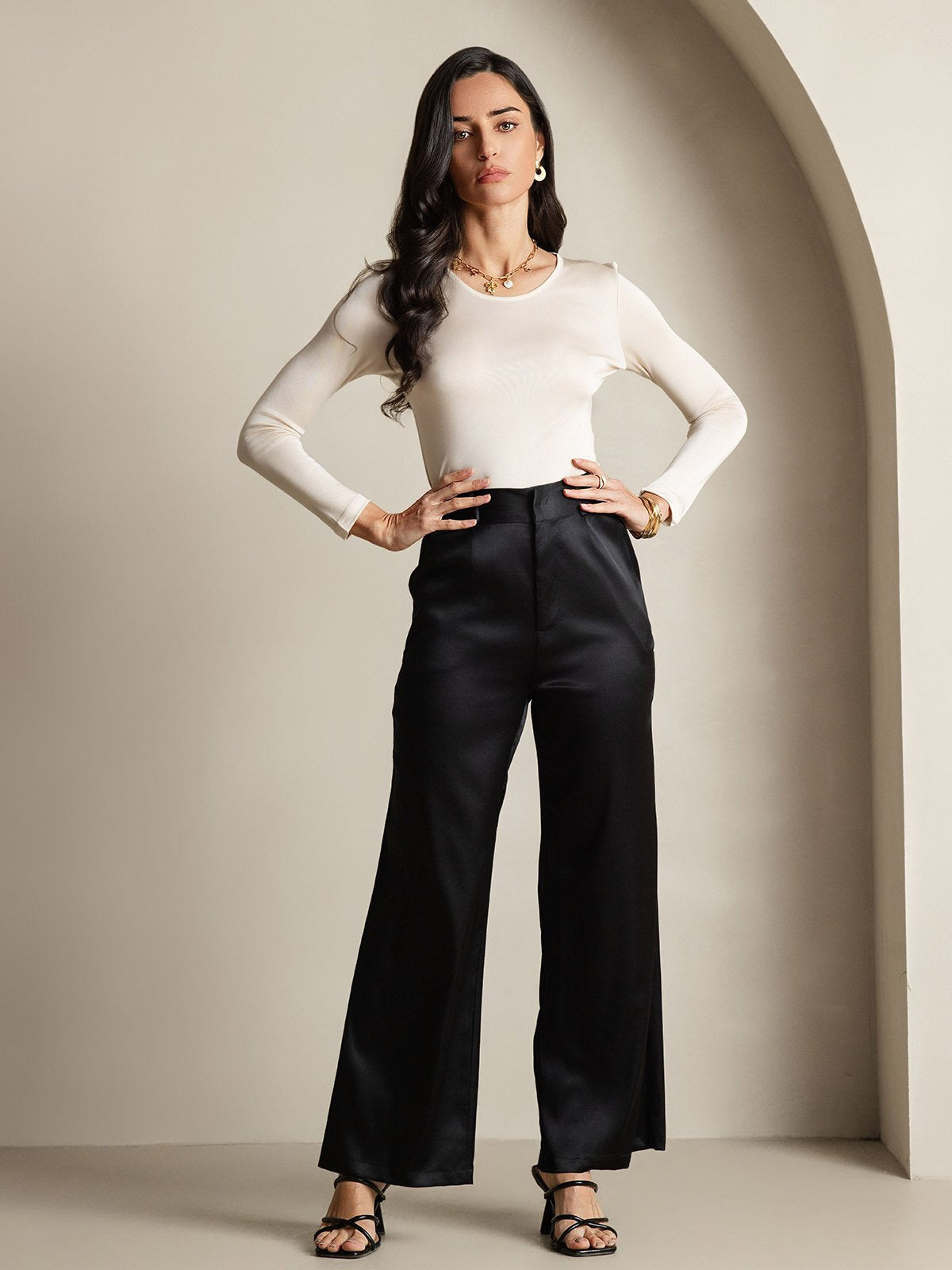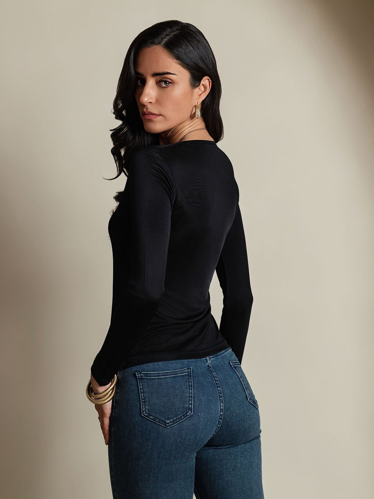 Mélange De Soie Col Rond Manches Longues T-Shirt