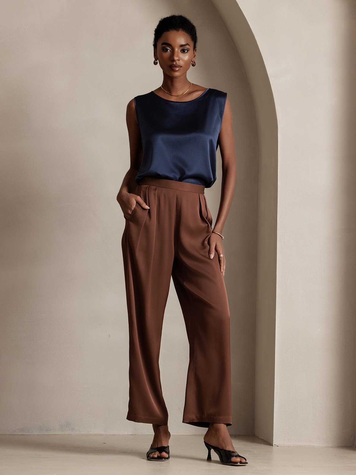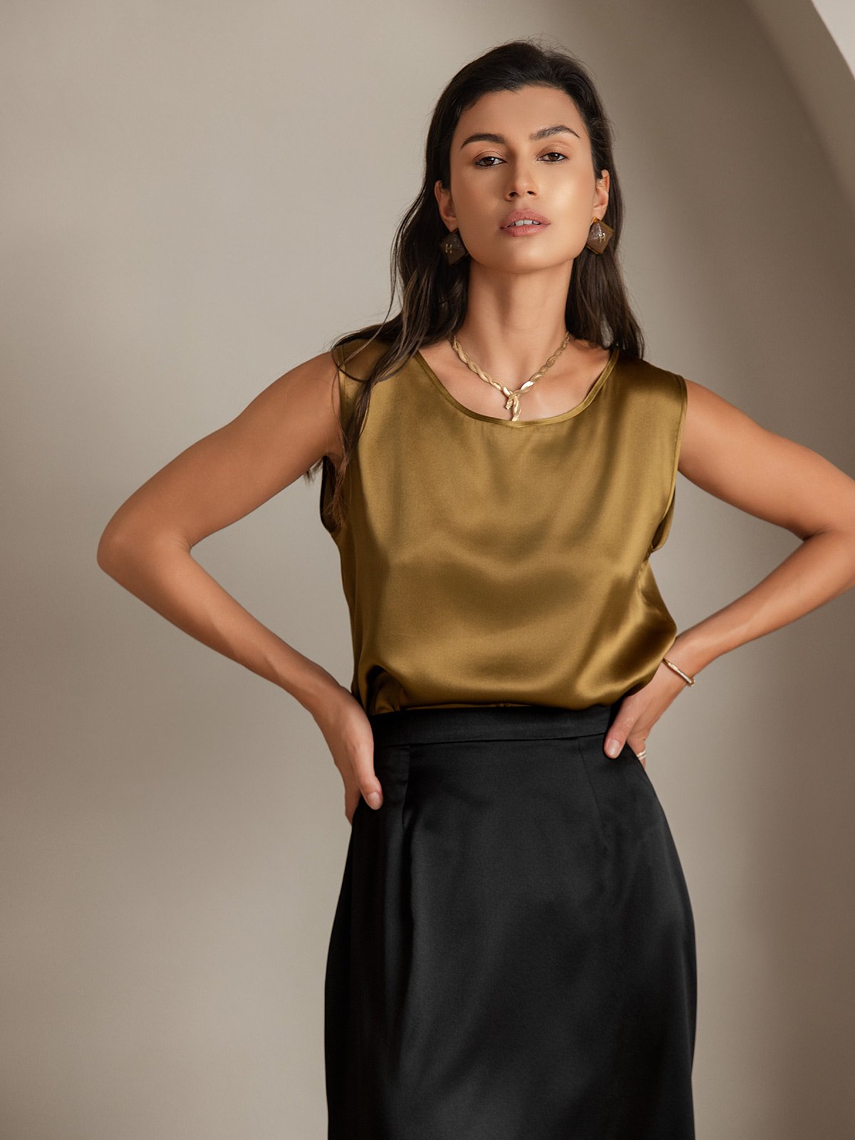 19Momme Soie Détente Col Rond Débardeur
