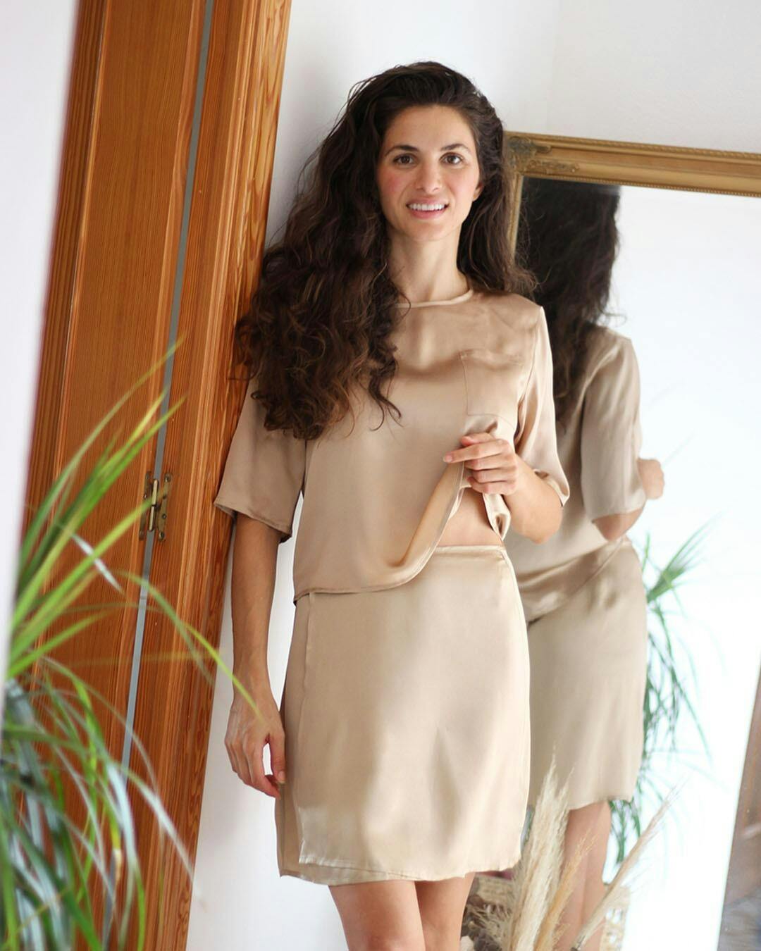 This skirt and top combination is almost too beautiful to wear only to bed. It made me remember to romanticize my evening routine and appreciate all of the blessings in my life. It's soft, comfortable, and fits so elegantly.